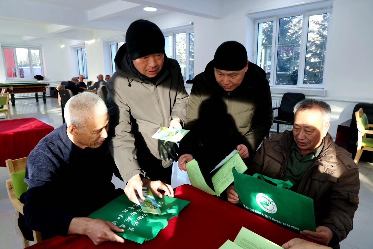 阿木爾林業(yè)局聯(lián)合宣傳小組成員向居民普及濕地保護(hù)知識,提升居民保護(hù)濕地意識(王力 攝)