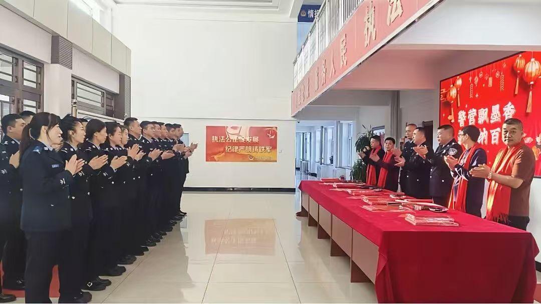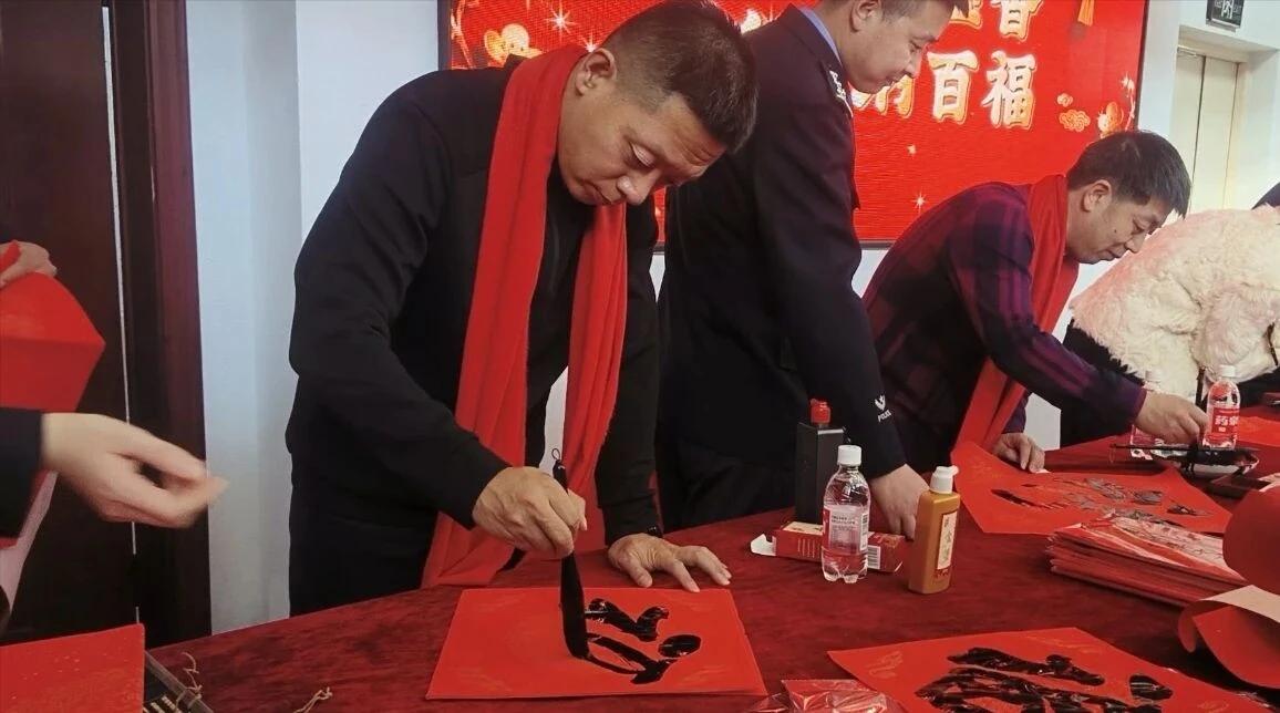 局政委王秀東出席活動(dòng)儀式并致辭,政工室主任劉鐵主持活動(dòng),市書(shū)法家協(xié)會(huì)名家與該局書(shū)法愛(ài)好者齊聚一堂,為堅(jiān)守崗位的民輔警送上新春祝福與文化滋養(yǎng)。活動(dòng)現(xiàn)場(chǎng)暖意融融、墨香四溢。大紅宣紙整齊鋪展,筆墨硯臺(tái)依次排開(kāi),書(shū)法家們凝神聚力、揮毫潑墨,筆鋒或遒勁有力、或溫婉流暢。一副副寓意深遠(yuǎn)的春聯(lián)躍然紙上,一個(gè)個(gè)飽滿圓潤(rùn)的“?!弊殖休d著美好期許,既彰顯了中華傳統(tǒng)文化的魅力,又融入了公安工作的使命擔(dān)當(dāng)。
