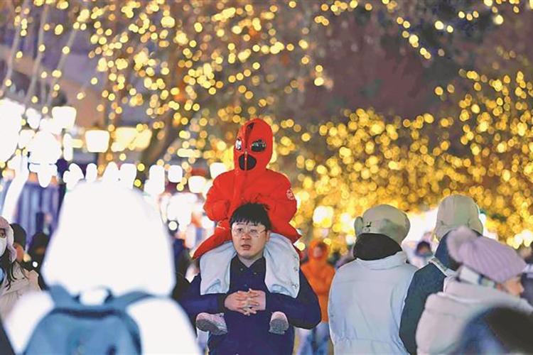 夜幕降臨,哈爾濱市中央大街悄然披上了一襲由光影精心織就的夢幻霓裳。流光溢彩的燈光,細細勾勒著獨特建筑的穹頂輪廓。游客不同方言的贊嘆聲此起彼伏,交織在浪漫的氛圍中,共同奏響一曲迎接新春的歡快樂章。