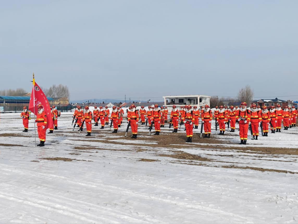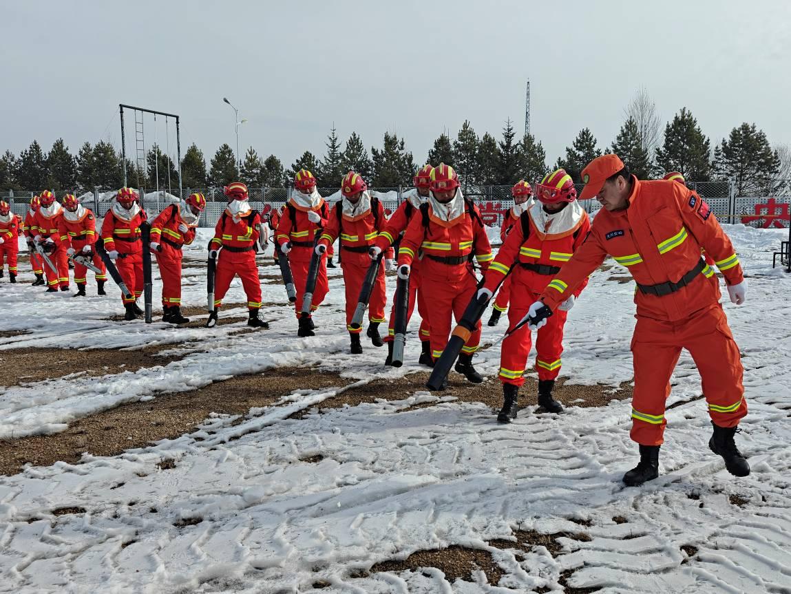 此次演練重點(diǎn)圍繞風(fēng)力滅火機(jī)協(xié)同作戰(zhàn)展開。在接到局森防指發(fā)出指令后,森林消防大隊(duì)迅速集結(jié)、整裝出發(fā),全體隊(duì)員按照小隊(duì)?wèi)?zhàn)術(shù)編組,攜帶機(jī)具對模擬火線進(jìn)行合圍撲打。從集結(jié)到合圍、從協(xié)同到配合,整個過程緊張有序、銜接緊密,橙色身影在白色雪地上格外醒目,展現(xiàn)了專業(yè)隊(duì)伍快速響應(yīng)的過硬素質(zhì)和良好的戰(zhàn)備狀態(tài)。