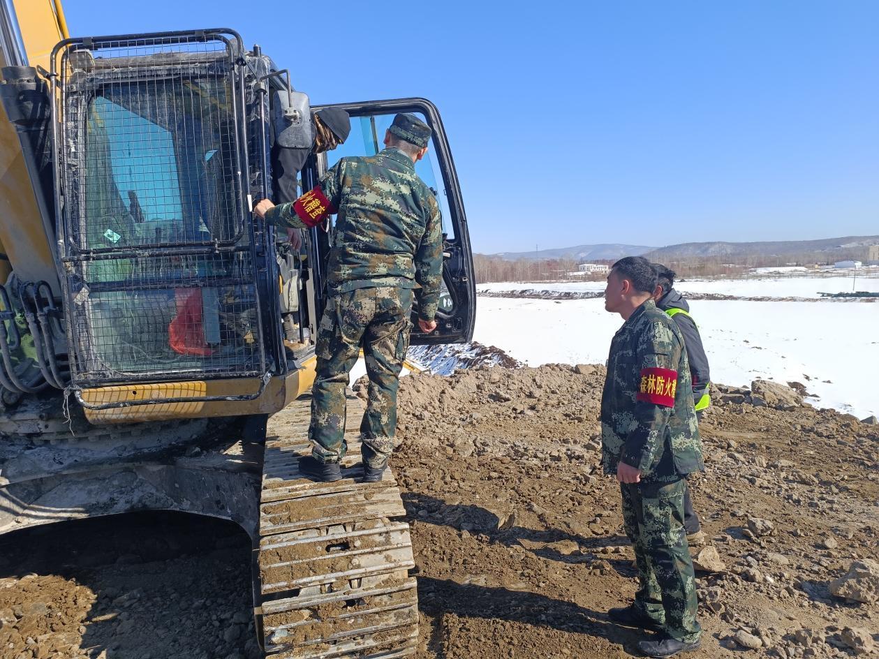 林場工作人員正在排查大型工程機規(guī)范作業(yè)情況(田嘉鑫 攝)