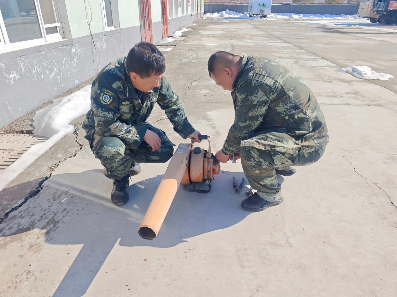 林場(chǎng)專業(yè)人員正在檢修風(fēng)力滅火機(jī)(李輝 攝)