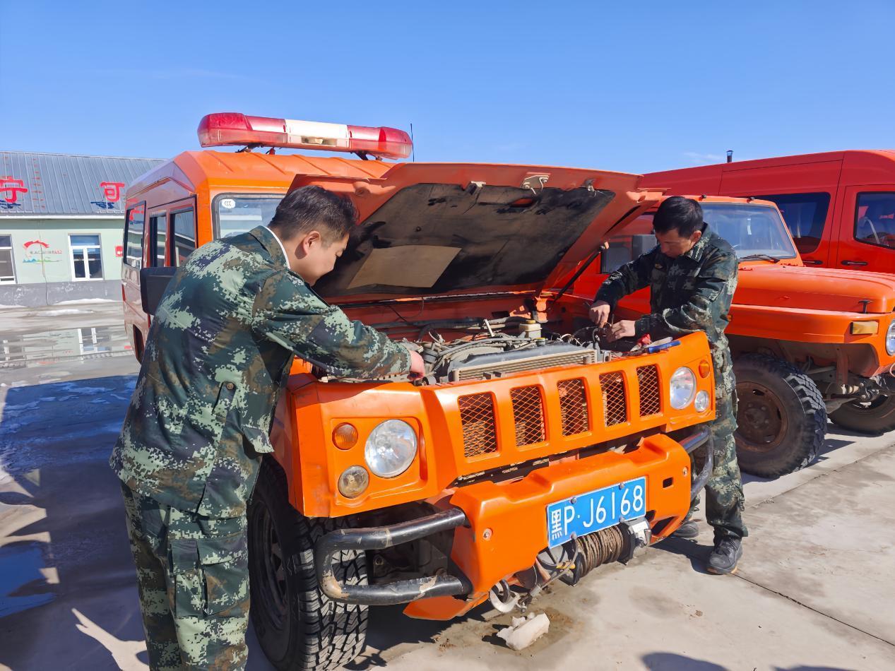 林場(chǎng)專業(yè)人員正在檢修防火車輛(李輝 攝)