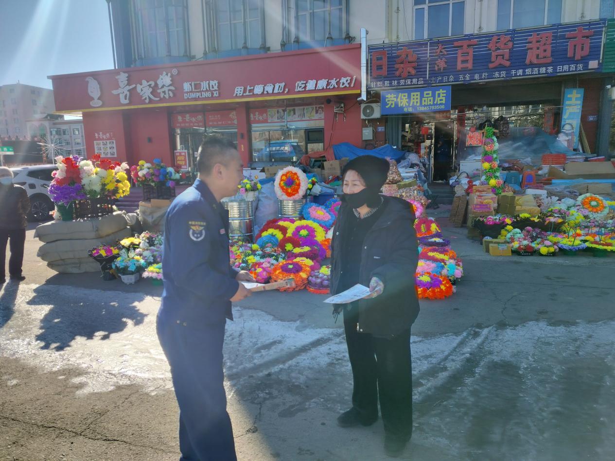 隨后,宣傳小隊深入廣場周邊及街巷內(nèi)多家專門售賣香燭、紙錢等傳統(tǒng)祭祀用品的店鋪。宣傳人員以“安全提示員”和“知識傳播者”的身份,向店主和顧客進行精準(zhǔn)科普。他們詳細講解了易燃祭祀用品在儲存、銷售環(huán)節(jié)的注意事項,以及一旦發(fā)生火情的初期處置方法,并懇請商戶在銷售時主動對顧客進行一句安全提醒,共同當(dāng)好防火“前哨”。