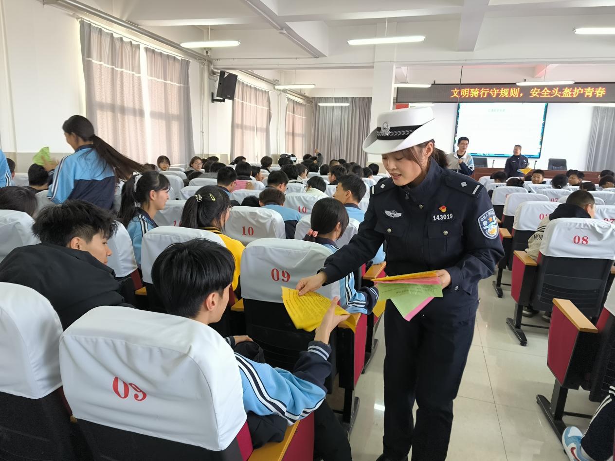 考慮到高中生群體的特點(diǎn),且部分學(xué)生上下學(xué)有騎行電動(dòng)自行車的需求,在宣講現(xiàn)場(chǎng),民警用通俗易懂的語(yǔ)言、貼近校園周邊的案例,圍繞電動(dòng)自行車駕乘安全這一核心,展開(kāi)交通安全知識(shí)講解。并通過(guò)播放典型事故案例視頻,以案說(shuō)法,直觀展示了未佩戴頭盔在發(fā)生碰撞時(shí)頭部遭受致命傷害的慘痛后果,以及多人合乘一輛車、追逐打鬧等行為帶來(lái)的失控風(fēng)險(xiǎn)?;顒?dòng)現(xiàn)場(chǎng)還設(shè)置了互動(dòng)問(wèn)答環(huán)節(jié),同學(xué)們踴躍參與,在輕松氛圍中鞏固了“知危險(xiǎn)、會(huì)避險(xiǎn)”的交通安全知識(shí)。