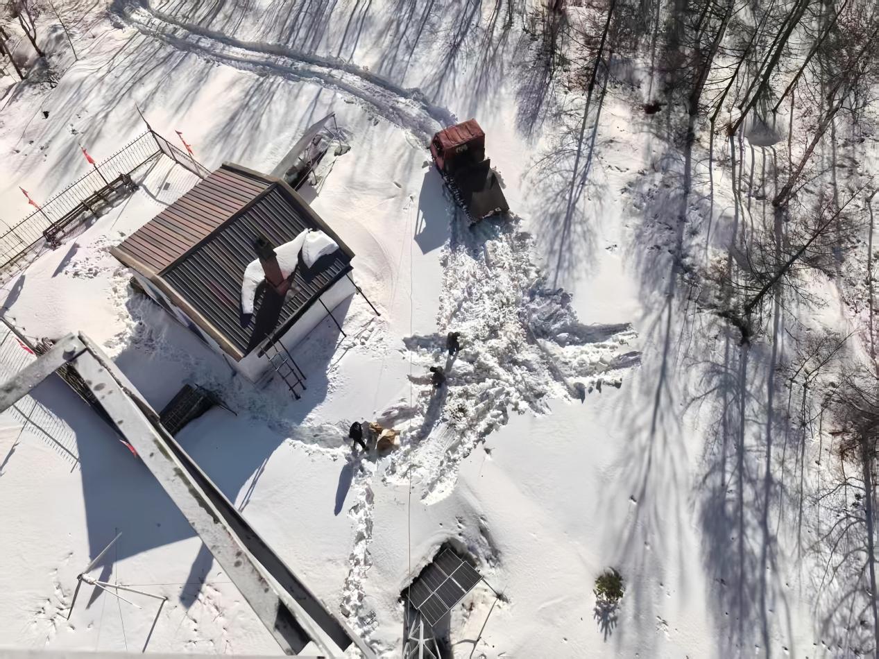 瞭望塔是林區(qū)火情監(jiān)測的“千里眼”,其完好程度直接關(guān)系到火險監(jiān)測的及時性和準(zhǔn)確性。受前期降雪影響,施業(yè)區(qū)積雪厚達(dá)半米,車輛無法正常通行,給維修工作帶來極大阻礙。為確保檢修工作順利推進(jìn),林場啟用集材50運(yùn)輸車開辟雪中通道。工作人員抵達(dá)塔位后,迅速清理塔梯冰層,細(xì)致檢查塔身牢固性,對電臺通訊信號進(jìn)行反復(fù)測試校準(zhǔn)。零下十幾度的嚴(yán)寒中,工作人員摘下手套操作僅幾分鐘,手指便凍得失去知覺,大家輪換著取暖、交替作業(yè),經(jīng)過一整天連續(xù)奮戰(zhàn),順利完成全部維修任務(wù),瞭望塔恢復(fù)完好狀態(tài),全面具備春季防火使用條件。